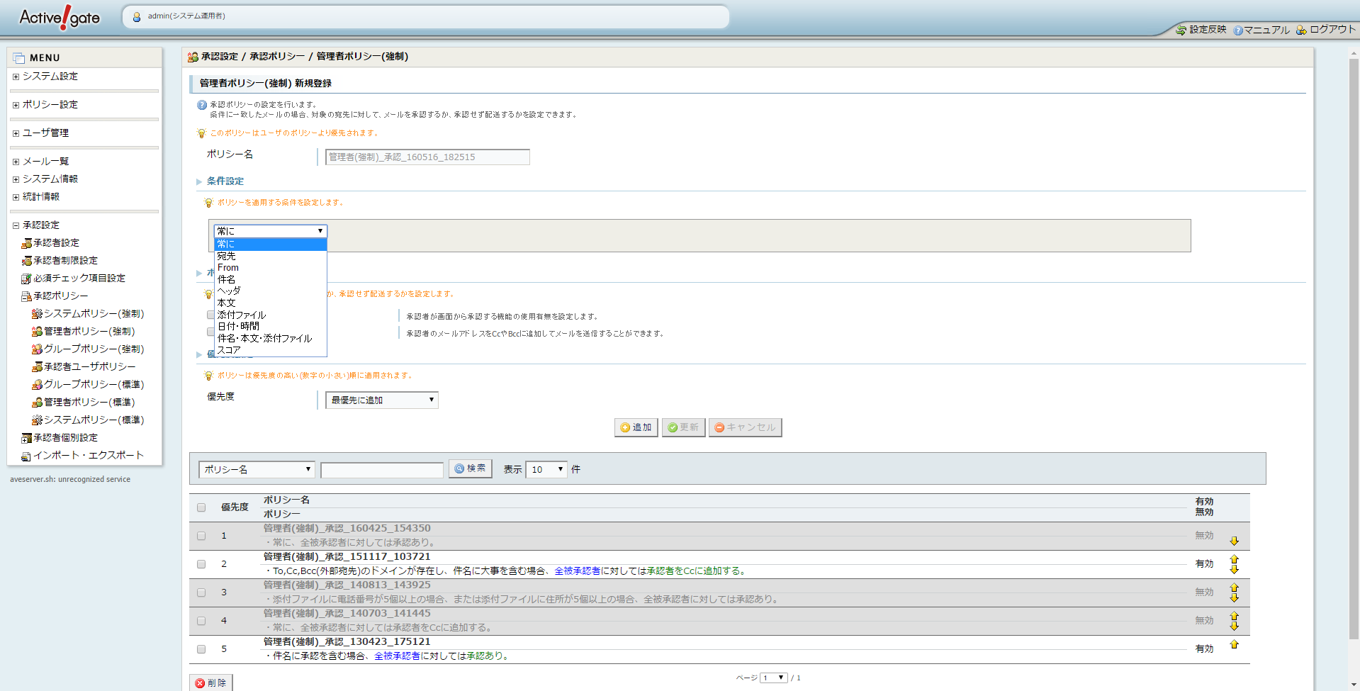 宛先、件名、メール本文のキーワード、添付ファイルの種類、ドメイン名などで承認が必要なメールだけを選別することができ、承認者である上司の運用負荷を軽減します。