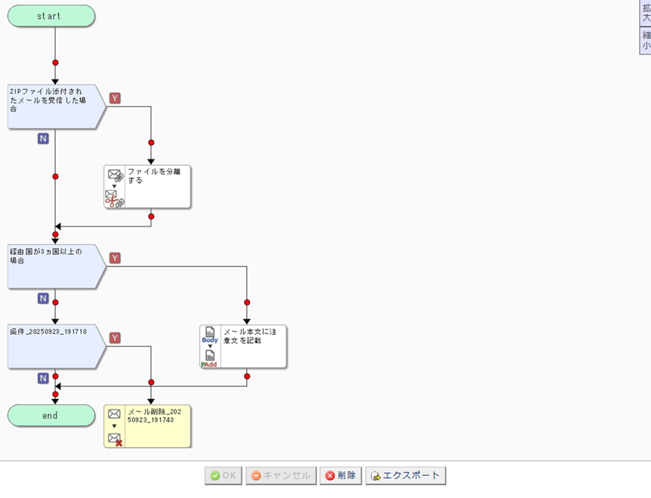 受信ポリシー設定は、直感的、視覚的に把握しやすいようフローチャート方式を採用し、処理内容やどのような条件の分岐にて実行されているのかが一目で確認できます。
