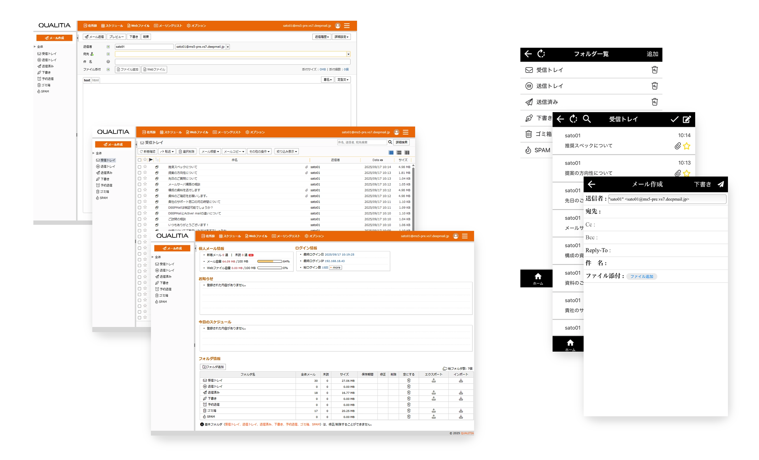 DEEPMailのメールエンジンは、文教、金融機関、公共などの2,000万アカウント以上の構築経験をベースに、SMTP、POP3、Webメールモジュールなどのすべての部分を独自開発しています。